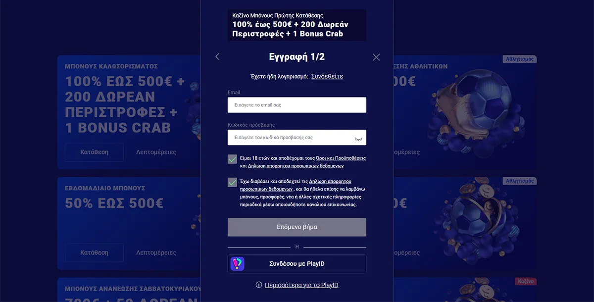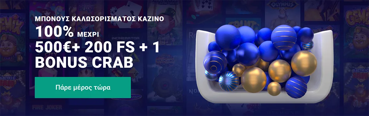 100% έως 500€ + 200 Δωρεάν Περιστροφές + 1 Bonus Crab